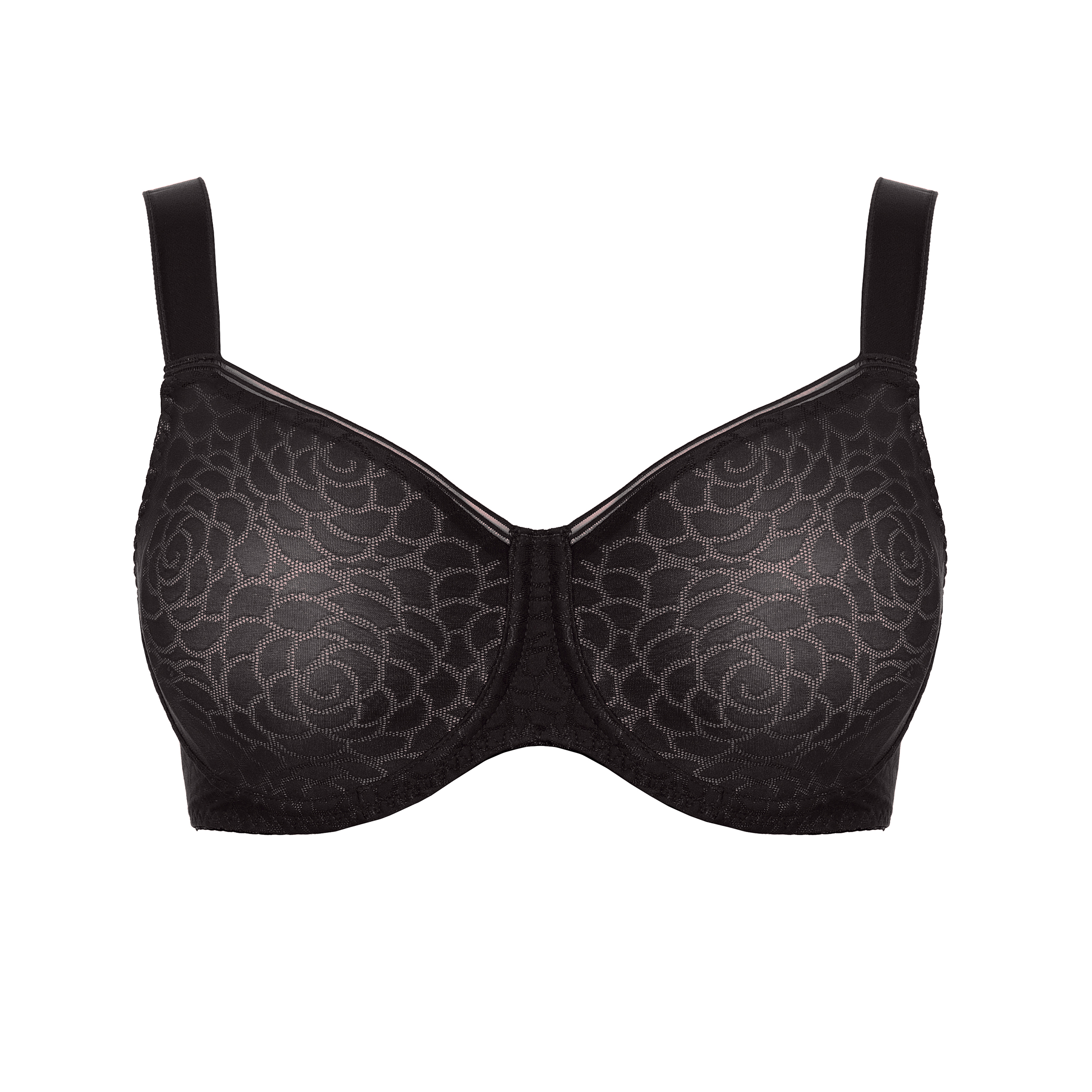 The timeless black colour highlights the subtle floral pattern woven into the fabric, giving the bra a sophisticated, understated look that works perfectly under everyday outfits as well as more elegant styling.