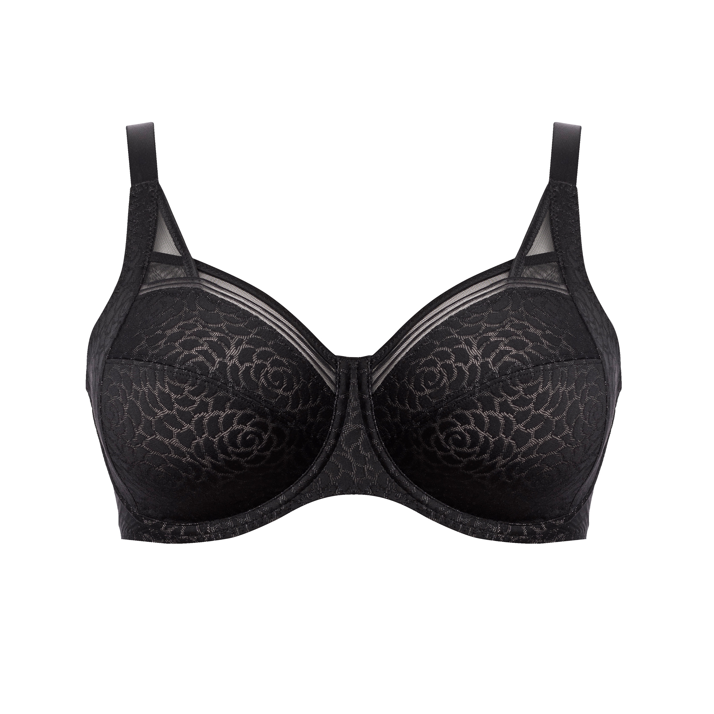 The timeless black colour combined with a subtle floral pattern gives the bra a refined, elegant look, making it a perfect choice for everyday wear as well as more fitted outfits.